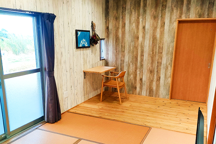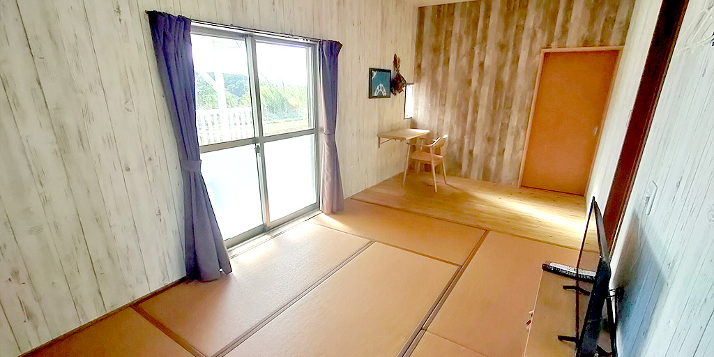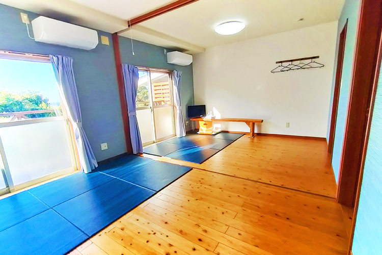 芝生のお庭に直結しており、ゆったりとくつろげる畳敷きです。